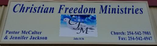 | Physical & Mailing Address: Christian Freedom Ministries 340-A Cove Terrace Shopping Center Copperas Cove, TX 76522 Church (254) 542-7981 Fax (254) 542-4947 |